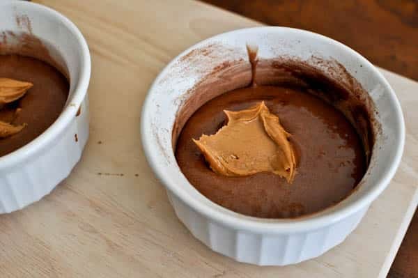 I spotted these molten chocolate peanut butter cakes on Food and Wine, and just couldn’t resist. Let’s not mention the fact that I never have made any type of molten cake or soufflé.
