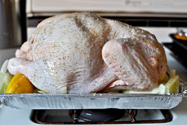 My mom always throws raendom things into the cavity of the bird like oranges, lemons, garlic, onion, herbs…literally whatever she has on hand it goes in there and it is always SO DARN GOOD!