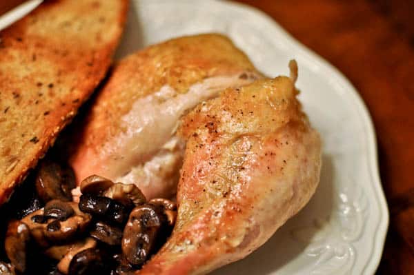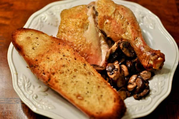 I just had roasted chicken for dinner…..and long before I saw this post. It was so good…I have never roasted a chicken before, but everyone talks about how easy it is. Sooooo good! I still need to make grilled herb bread,, and never would I turn down some mushrooms sautéd in butter.