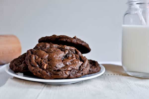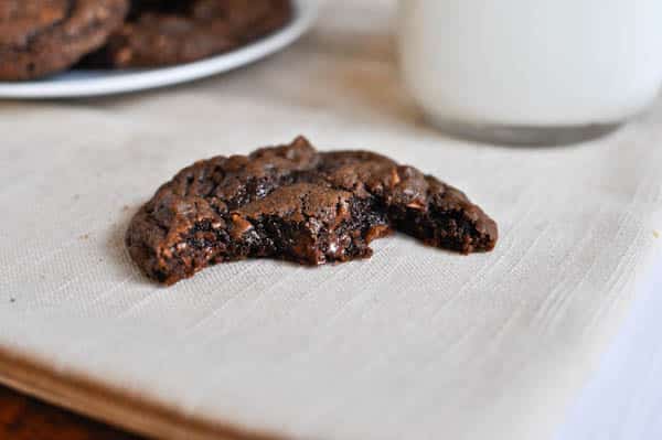 But I made some cookies that sort of changed my tune. Think ice cream. Mocha almond fudge ice cream. I really don’t like nuts in ice cream either but, well… I made these anyway.