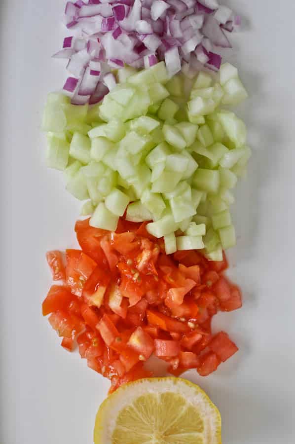 When tons of feta and marinated chicken and bright lemon and fresh dill are involved, I can deal with a few squares of cucumber and tomato and onion. It’s like… a law of the universe or something.