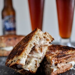 Crockpot Pulled Pork + Beer Cheese Grilled Cheese Sandwiches.