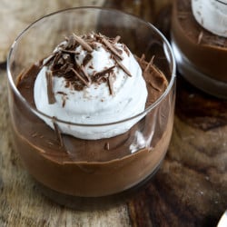 - A few minutes before serving, remove the other can of coconut milk from the fridge and whip the cream just as you did earlier. Once whipped, add in powdered sugar and beat just until the sugar is incorporated. Top mousse with the whipped cream and extra chocolate shavings if desired.