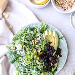 You definitely don’t NEED the avocado and berries. The salad along, just the greens, cheese and pine nuts makes for a perfect summer salad. It’s super light but filling and works before almost any dinner since it doesn’t have many offensive flavors. Do I always say this? I think I always say this. But it’s true!