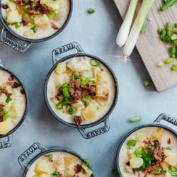 Hi! I was searching for a recipe to make for dinner and knew I had to make this asap with the potato, cheddar cheese, and bacon combo! I just made it now and wanted to let you know I’m loving this soup. I didn’t change anything except I used a higher percent milk (whatever I had in the fridge). Perfect for a chilly night in pajamas! Thank you so much for posting this! =)