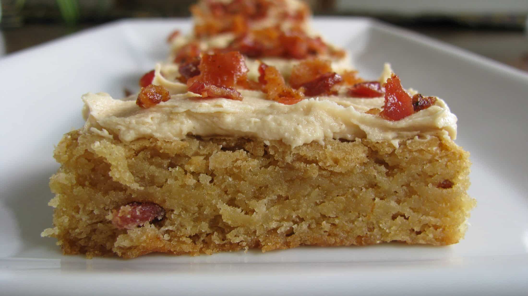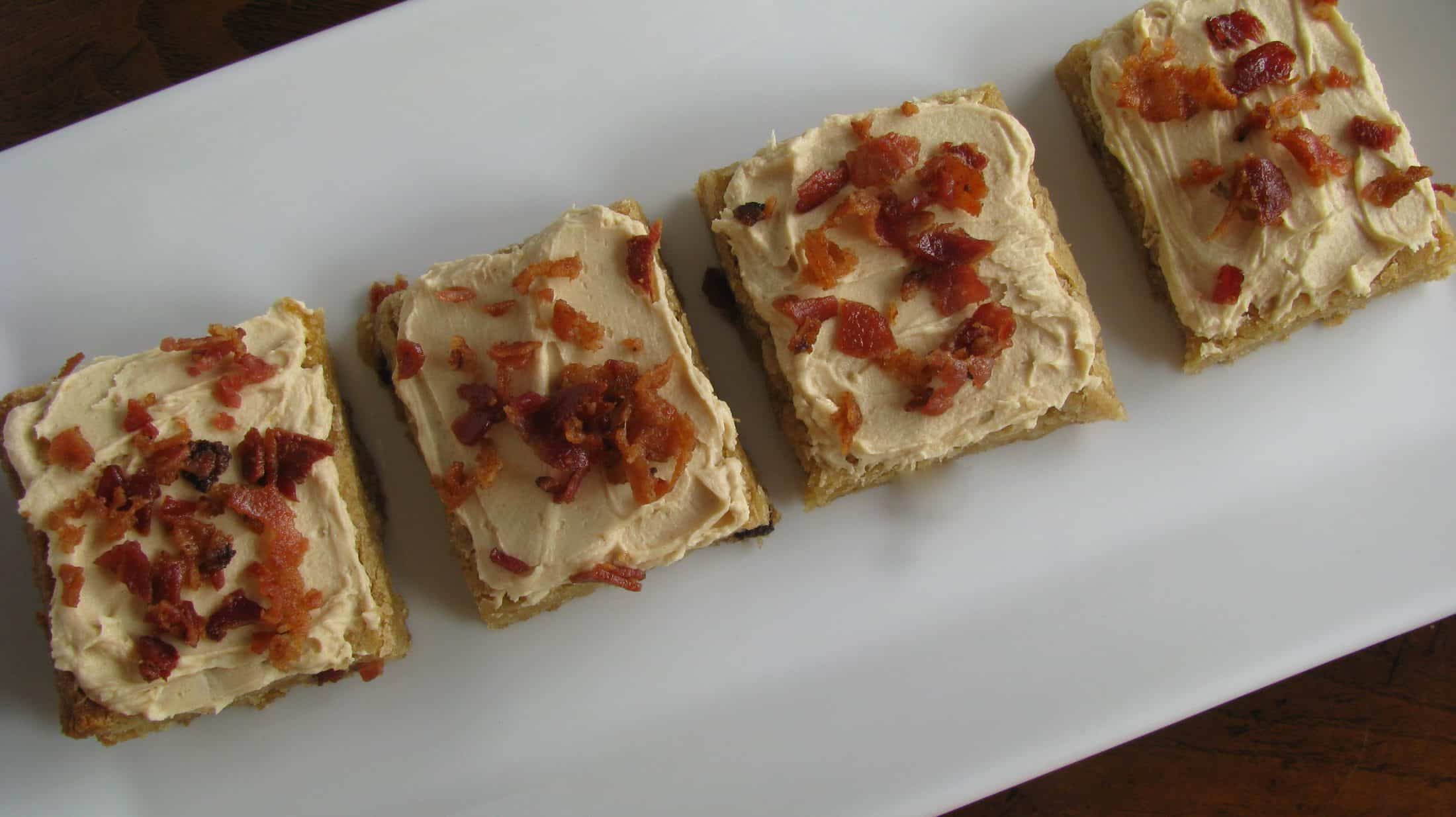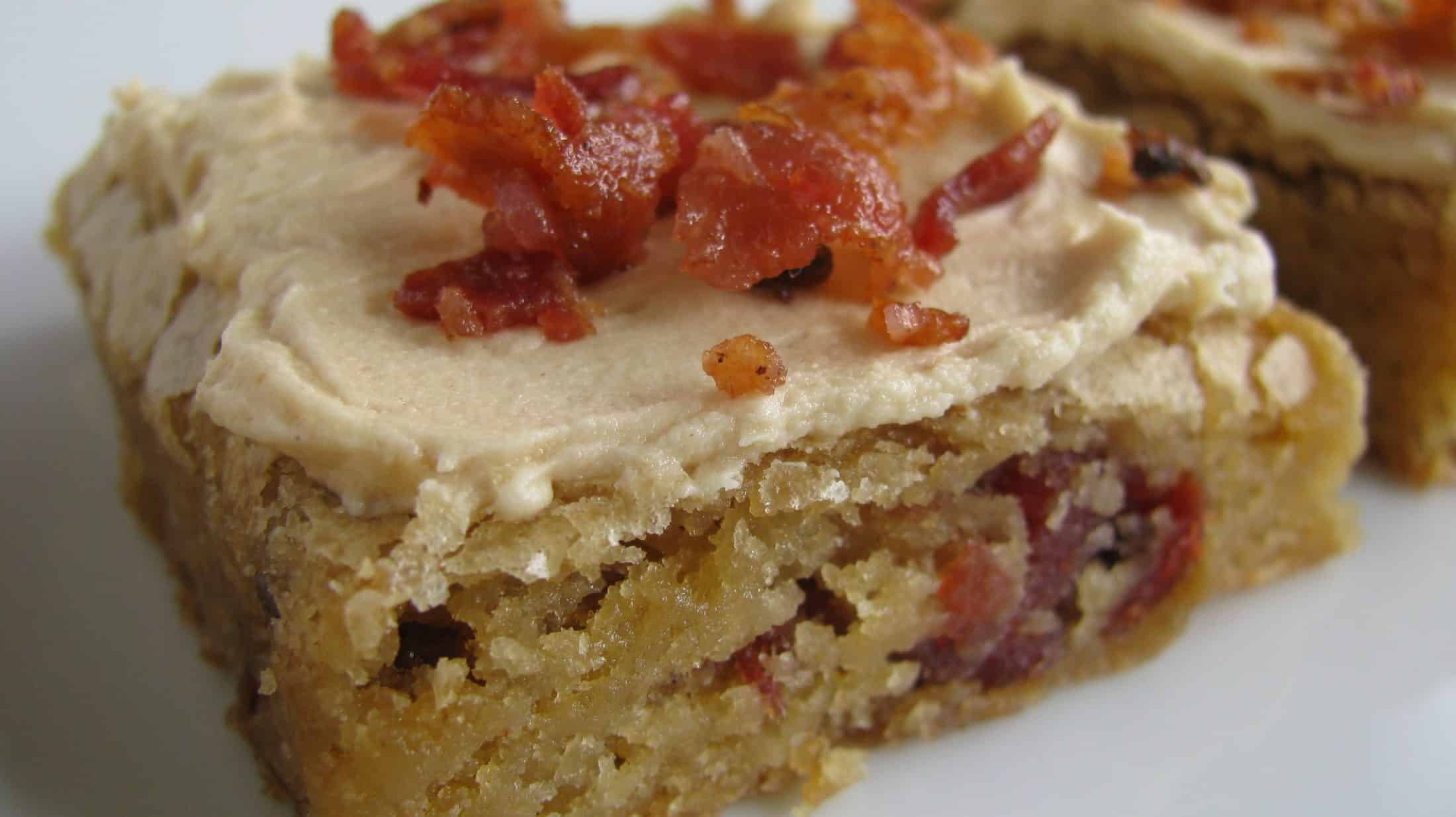 Frost blondies, then top with crumbled bacon.