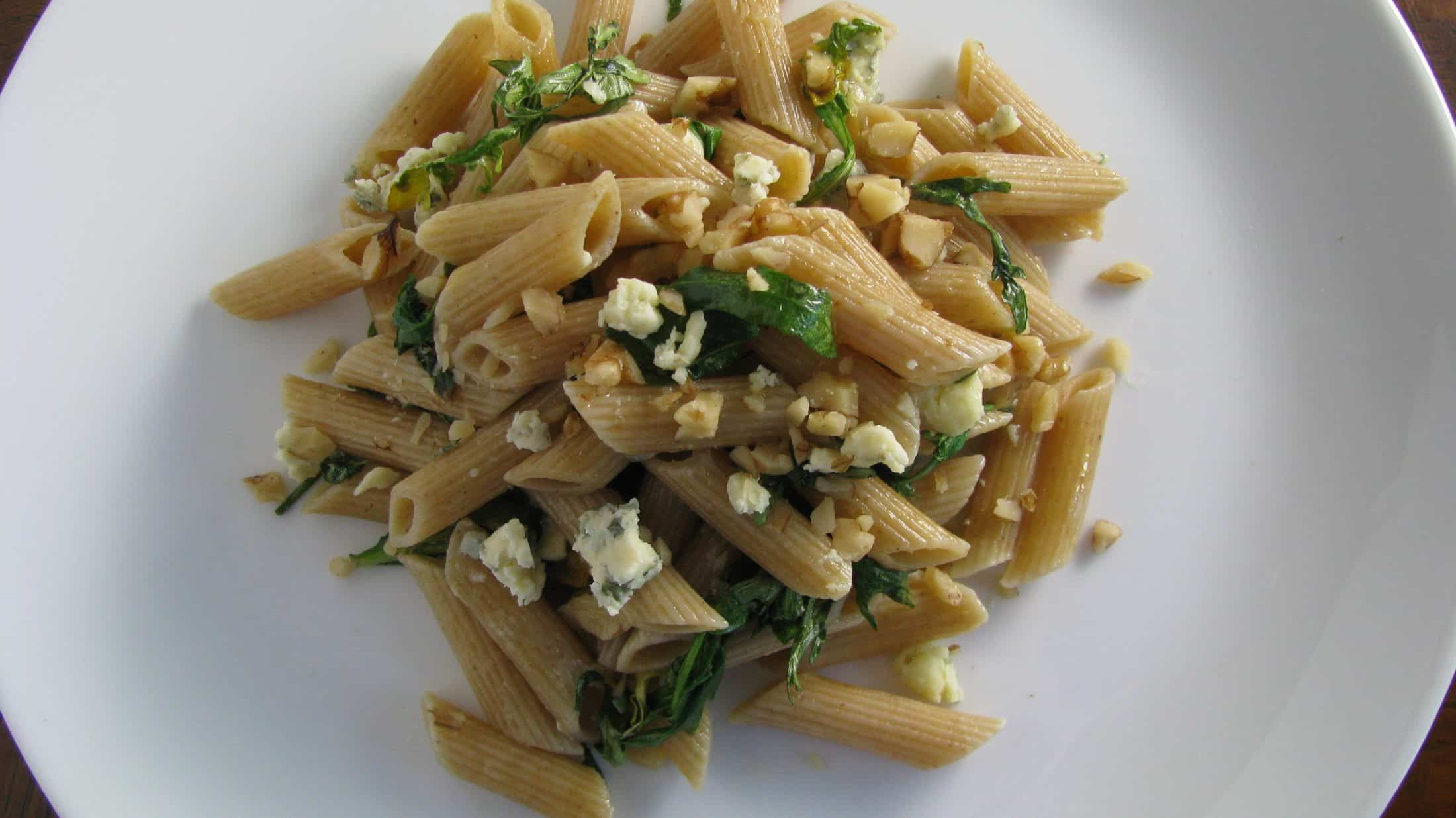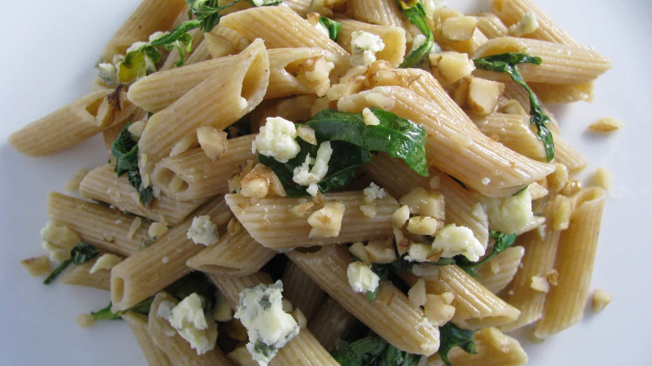 Whole Wheat Pasta with Arugula, Gorgonzola, and Walnuts