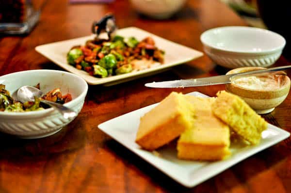 It looks incredible, especially the brussel sprouts! I can’t wait for you to share the recipe for the corn bread!