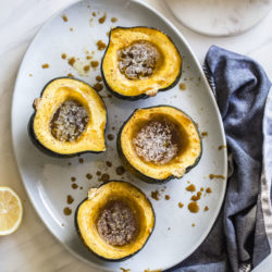 That’s quite a mouthful up there, eh? But I couldn’t leave anything out. I needed you to know just exactly every flavor that went into this delicious baked acorn squash. Trust me. It deserves the attention.
