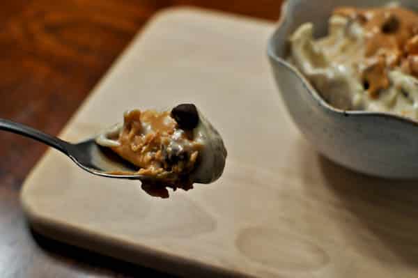 I definitely do the banana, nut butter and chocolate chip thing, now I see that I really really need a food processor! But my go-to after dinner sweet snack is sorbet with chocolate chips. My favorite flavors are passion fruit, lemon, and blackberry cabernet, which really and truly tastes like wine and is heavenly. I love the soft melty sorbet mixed with the crunch of dark chocolate chips.