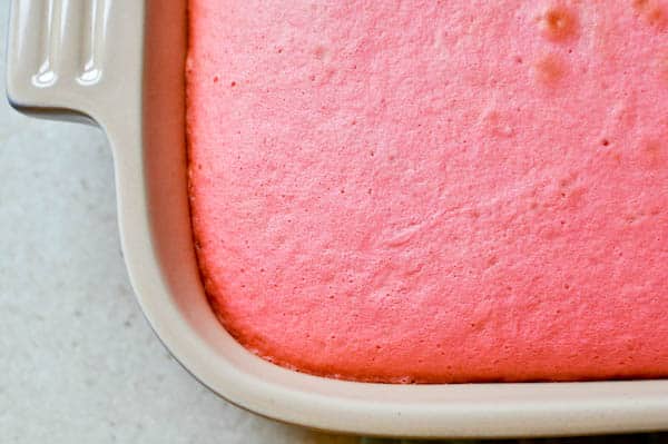 Prepare cake batter and bake as directed. I often use a 9 x 13 cake pan as I find this is easiest.