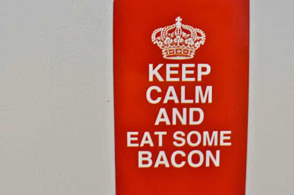 Having something in my house like that would backfire on me. Not because I’m a vegetarian – let’s pretend I wasn’t. If I had that in my house, every time I would start to freak out about something, the Husband would either shove that magnet in my face or scream BACON really loudly.