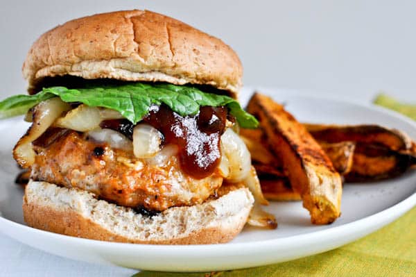 These are amazing burgers. The chicken stays really juicy and the flavors of the sweet caramelized onions, smoky bbq and sharp cheddar really complement each other. Honestly, they’re better than a fried chicken burger and healthier. Definitely try these and even if you don’t have a few spices, they’ll still taste great.