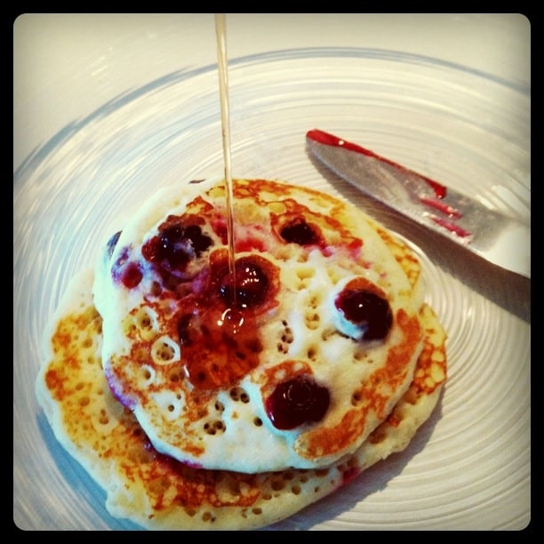 Did your Dad use cherry pie filling in those pancakes? They look amazing!