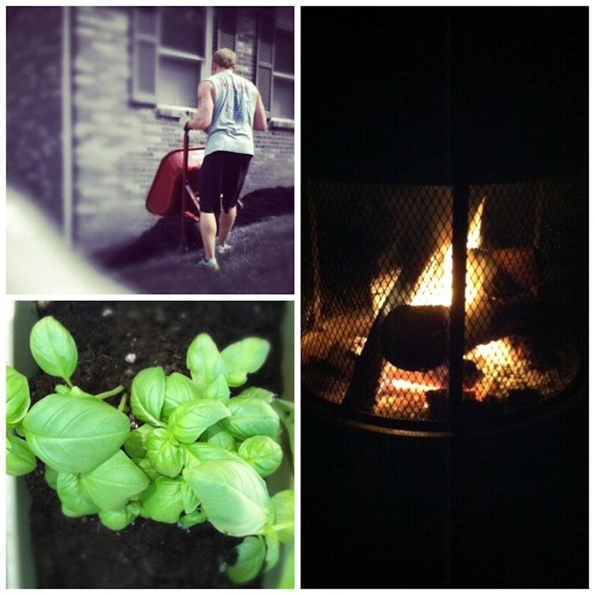 supervising the worker.basil in a pot.friday night fire.