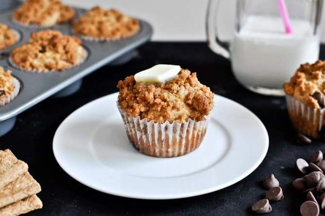 Graham Cracker Chocolate Chip Muffins I howsweeteats.com