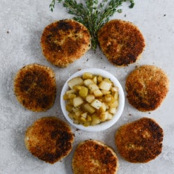 40 Comments on “Crispy Goat Cheese Risotto Cakes with Vanilla Salted Winter Pears.”