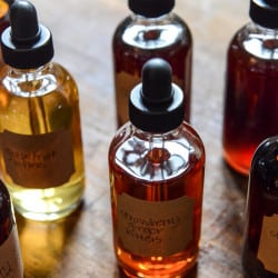 - After 10 days, strain the jar to remove the ingredients and sediment from the bottom. Let the mixture sit for another 3 days and strain again. Add the mixture to dropper jars, straining one more time in another day or two to remove any bits from the bottom.
