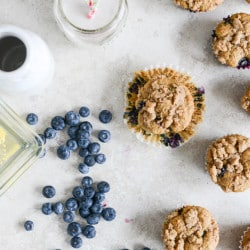 Whole Wheat Blueberry Yogurt Crumb Muffins