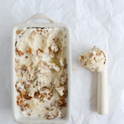 Almond Torte Mascarpone Ice Cream with a Brown Butter Almond Crunch I howsweeteats.com