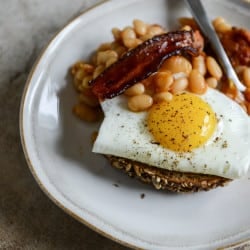 I’ve been eating beans and eggs for years – in fact, I’ll often make extra baked beans just so I can have them for breakfast for a couple mornings the following week. But the eggs need to be fried or poached, with ridiculous runny yolks so the whole mess marries together and creates a fabulous flavor explosion that fits perfectly on seedy, crunchy toast.
