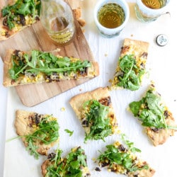 Yum! The arugula topping (and corn!) totally make this health food. Love fresh greens on top of flat bread or pizza…and short ribs. It’s all about balance…