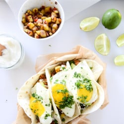 chorizo and fried egg breakfast tacos I howsweeteats.com