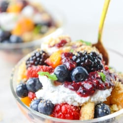 Summer Fruit Brown Butter Shortbread Parfaits with Coconut Cream.