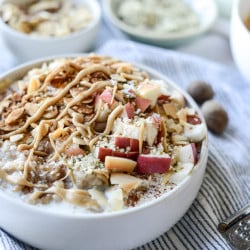 Since we always talk about toppings for life, I doused my bowl in toasted almonds, hemp seeds, more apples, crunchy shredded coconut AND coconut chips and that whipped maple situation.