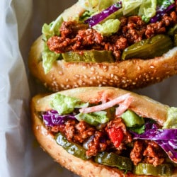 We didn’t grow up eating a ton of sloppy joes and we definitely didn’t grow up eating homemade ones. I think shortly after Eddie and I were married, I made a version but it was once and only once. However, last year at this time, when I was really pregnant and moving and traveling a bunch for my book and just craving some comfort food and nostalgia and all that jazz, I couldn’t get sloppy joes out of my brain.
