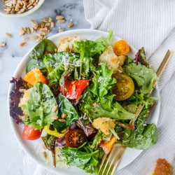 Love, love this salad! I make it weekly. My only changes are using pine nuts instead of sunflower seeds, plain old Kraft grated Parmesan in the green cylinder, and subbing Penzey’s Black & Red pepper for any of the salt in the recipe. (Watching the sodium these days). An outstanding classic salad!! Thank you.