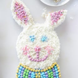 This is one old school cake! Please tell me you’ve seen, tried, eaten or have at least walked by the bunny cake at one of your Easter brunches, lunches or dinners over the years. It’s a classic staple around here and almost embarrassingly easy. And fun!