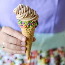 - If desired, dip your cones into melted nutella and sprinkles before serving. You can do it ahead of time and stick the cones in the fridge too.