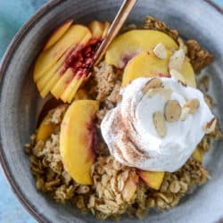 I’m making this for the first time this cozy season tomorrow and since I’ve made this so many times over the years, I thought I should write a review. I love this recipe and it’s become one of my most beloved wintertime recipes when you need a little sunshine and warmth on a dreary day. I toast my oats beforehand in browned butter and a little of salt. And I use my canned peach butter but honestly, just store-brand peach slices in syrup and I don’t drain the syrup. I don’t have access to fresh peaches and I don’t even mind because the syrup adds just another dimension of heaven to this. :)