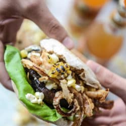 But back to the burgs. (<ew. sorry I said it that way.) On top of these blue cheese bundles of love, I added a pile of crispy shallots. And a handful of grilled corn because I can’t ever, ever, EVER stop with the grilled corn in the summer.