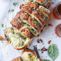 I love bread and this recipe with pesto and the garlic butter is to die for.