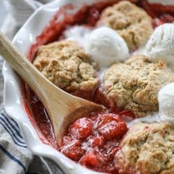 But! With that being said… this strawberry cobbler is inssaaaane. It is so, so good. On another level, especially if you are a strawberry lover. And especially when served hot and piled high with a hugely humiliating scoop of vanilla ice cream. Or chocolate ice cream! Whatever floats your boat.