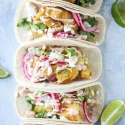 Crispy Beer Battered Avocado Tacos.