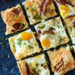 This is a super easy recipe that can be thrown together for a holiday brunch. Unfortunately, it’s not like a casserole where you can prepare the dish ahead of time (um, tater tot breakfast casserole anyone?), but with the puff pastry, it’s super quick and simple since it’s not like you have to wait for dough to rise.