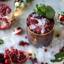 This super festive and fun cranberry pomegranate julep is a tad on the stronger side, for those of you who want something more than a mimosa or a margarita. Something a little EXTRA.