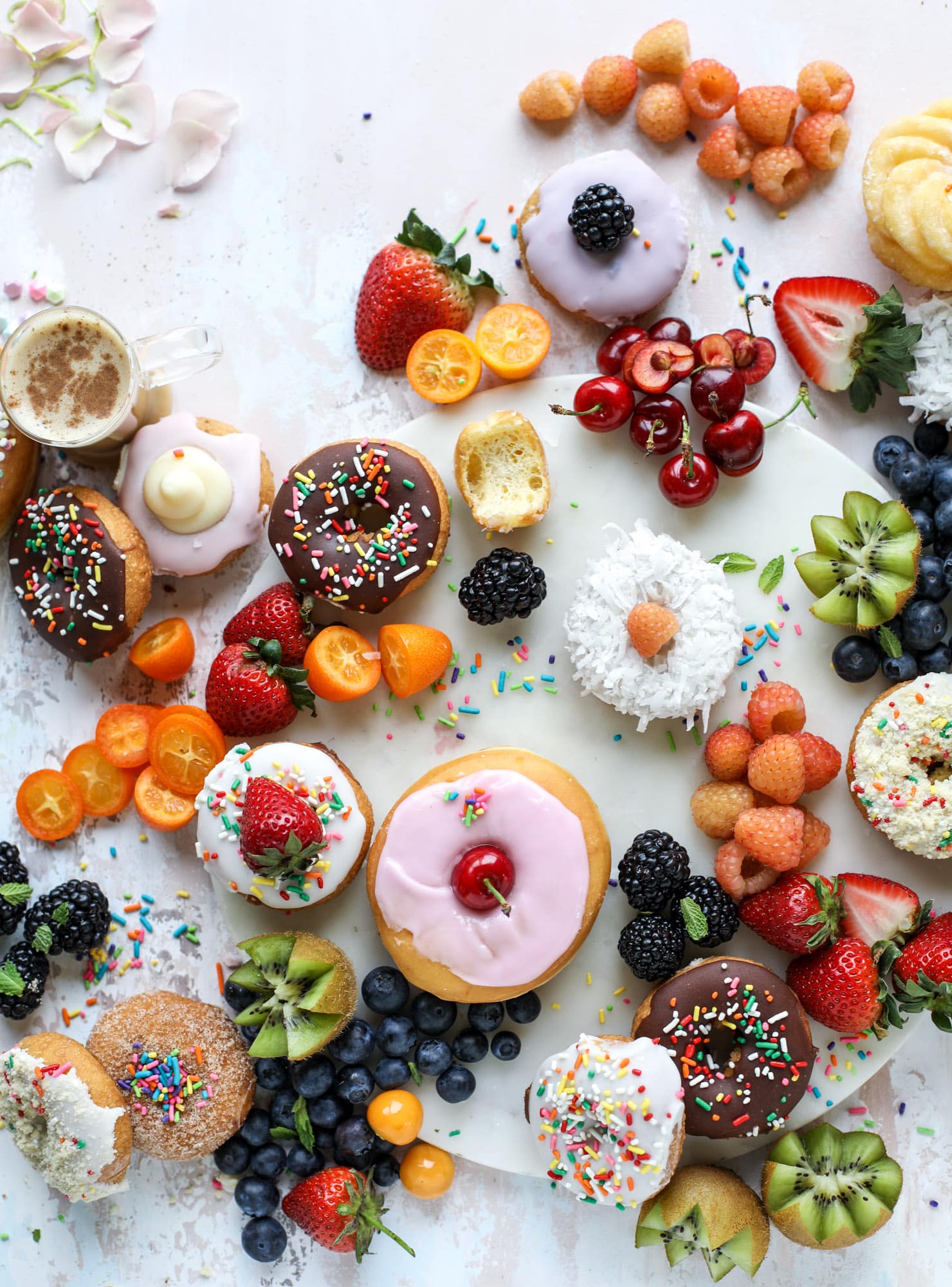 All the donuts! HELLO it’s national donut day, people! If you’re looking for something to celebrate, I’ve got you covered but I would definitely recommend the salted dark chocolate donuts I shared earlier this week. And if you’re feeling super extra, make a donut snack board like I show up above with your favorite donuts, fruit and… sprinkles. Of course!
