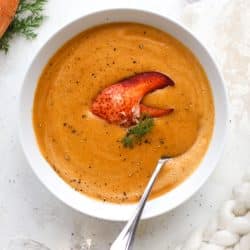 I AM SALIVATING!!! This lobster bisque looks amazing. So glad there is sherry in this recipe. Lobster bisque just isn’t the same without sherry!! I think this is going on the menu for the week when my husband is away for work — he hates lobster! But I can happily eat my way through the 6 servings the week he is gone, haha.