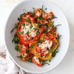 - You can do this with the mini snacking peppers too! I do the exact same thing, the portions you add into the pepper are just smaller. You can bake for less time too – more like 15ish minutes.