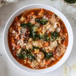 Love all the extra amped up flavor in this minestrone. It’s a favorite! I cooked up some dried heirloom beans and some frozen pesto from my summer garden. Came out great!