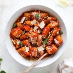 - Once the gnocchi are cooked, serve them however you'd like. Here, I used marinara sauce, fresh herbs and shaved parmesan. Super simple and delicious!