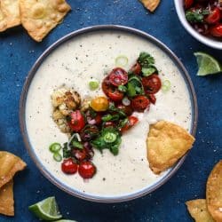 This roasted cauliflower queso has all the deliciousness of regular queso, with roasted cauliflower added in. It's satisfying and tastes like heaven.