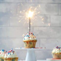 Oh and one more thing. I certainly don’t condone trying to serve these cupcakes with a burning sparkler in the center. But really, are you even a food blogger if you don’t photograph a dessert with a sparkler for the 4th of July?