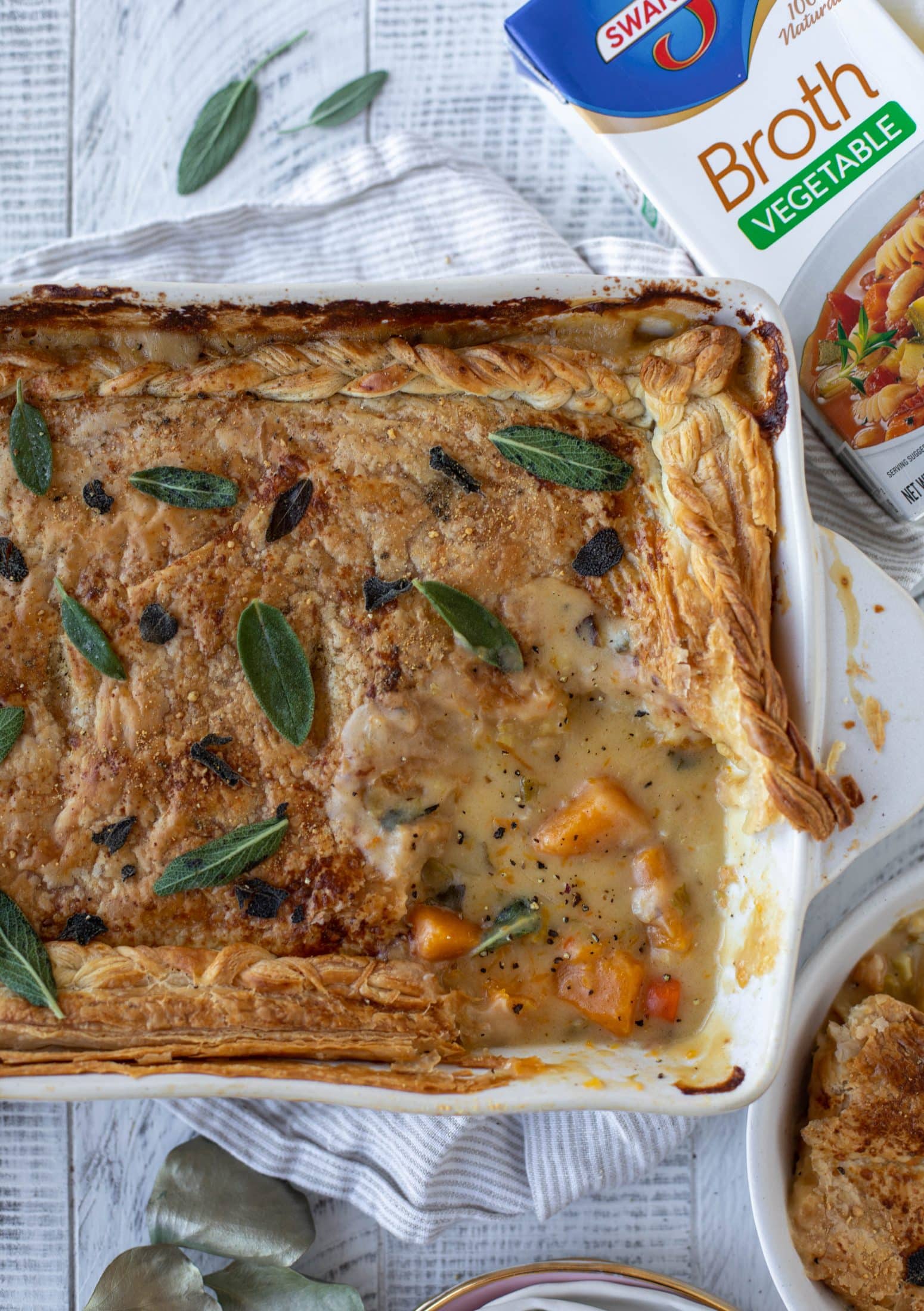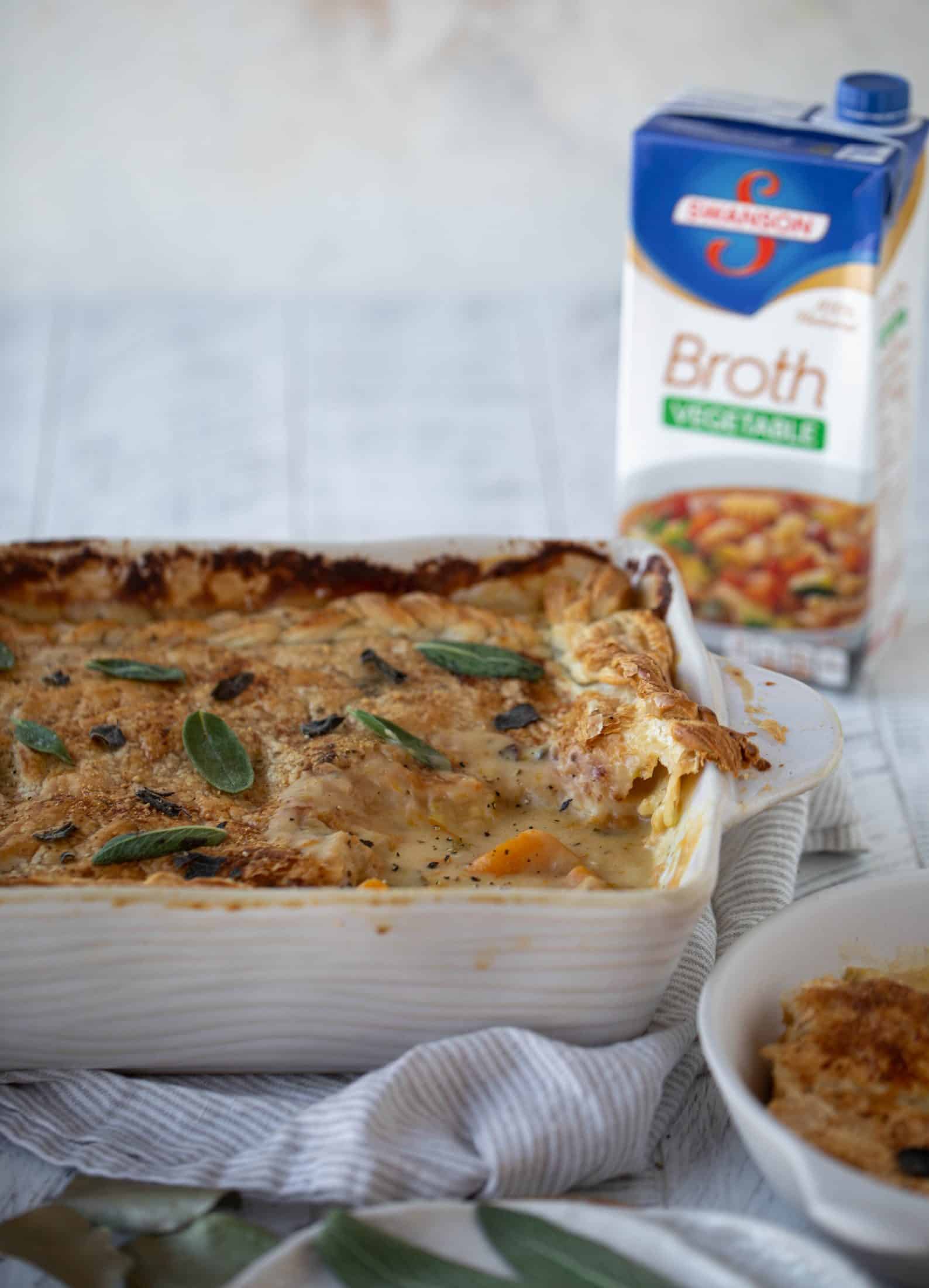 Today I’m partnering with Swanson to share this incredible butternut squash pot pie recipe with my favorite broth – Swanson Vegetable Broth! Swanson is a staple in my kitchen! And I just love to have the broth on hand because it’s so versatile. It adds so much flavor to everyday meals and, not to mention, makes meal prep easier.
