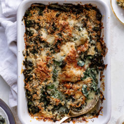 So that’s what was so appealing to me about this gratin. The bottom of the dish turns creamy, like greens cooked with cream and cheese. But the top pieces of kale sticking out get crispy, along with the cheese sprinkled on top, and it’s crunchy and flavorful and crisp and a texture lover’s dream.