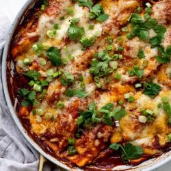 These are spectacular! Every previous attempt I’ve made at homemade enchiladas has been far too much work for very little payoff but this was the exact opposite – shockingly little work to prepare (with the help of a grocery store rotisserie chicken) and clean up with amazing flavor. Thank you!! :)
